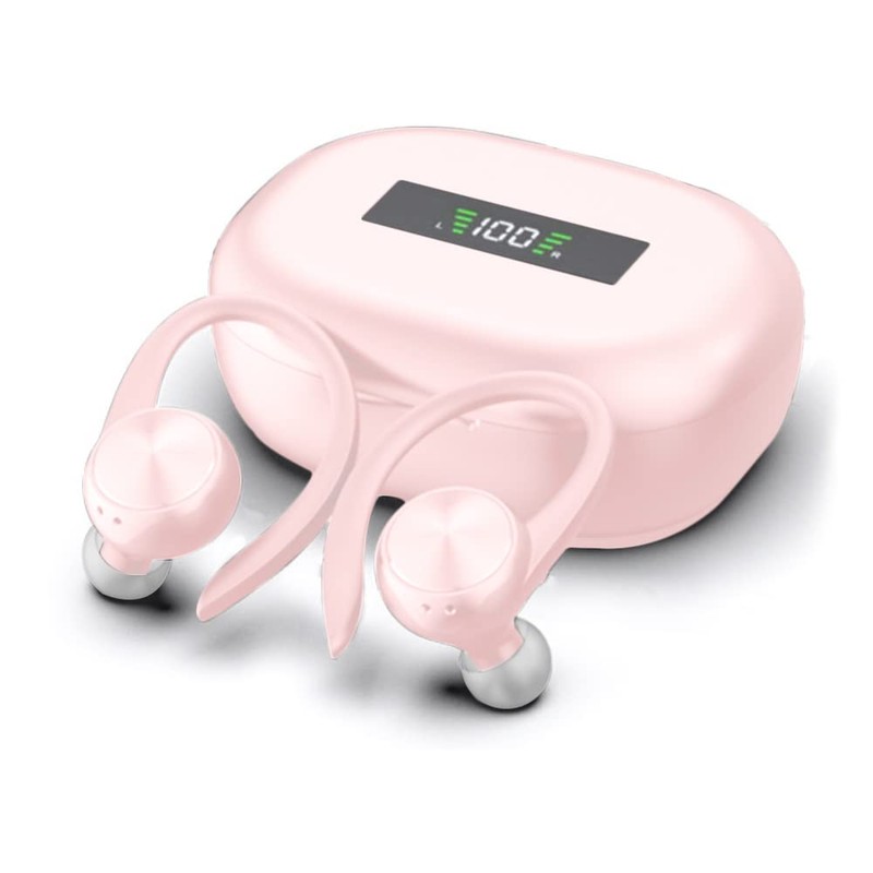 eDealz Fully Wireless Bluetooth 5.0 Rechargeable Active Sports Earbud Headphones w Smart LCD Display 48h USB C Power Charging Case Microphone Surround Stereo Bass and Passive Noise Cancelling (Pink)