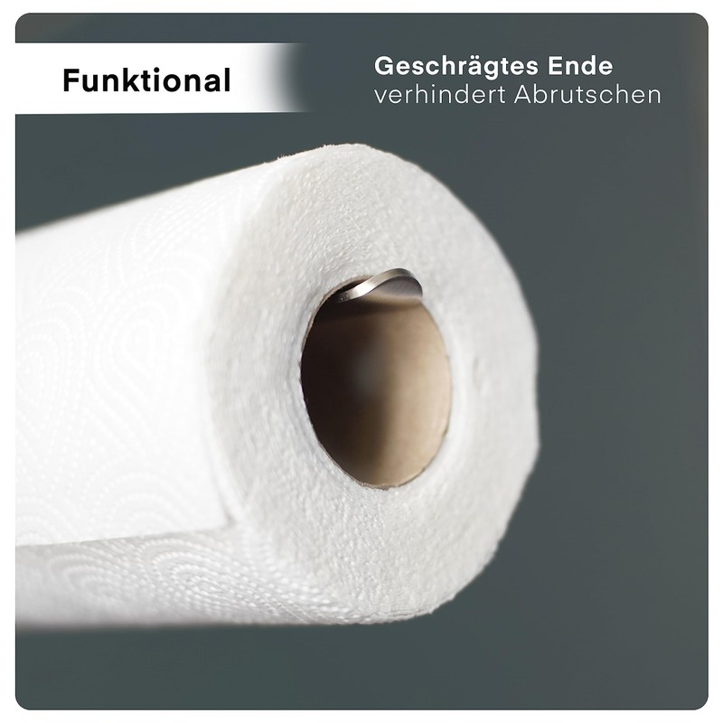 - ✔️ No more messy – the kitchen roll always stays securely in place thanks to the innovative curved end. The kitchen towel holder from Edelreiter does not move a millimetre