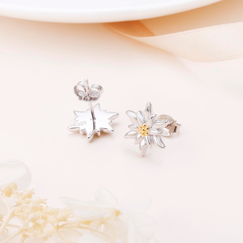 - This darling flower Edelweiss sterling silver earrings weight about 2.08g.