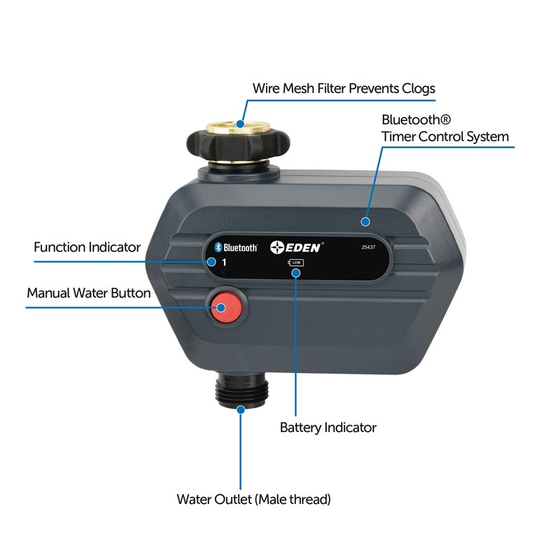 Eden 25441 Bluetooth Smart Water Timer 1-Zone, Compatible with Wireless Soil Moisture Sensor