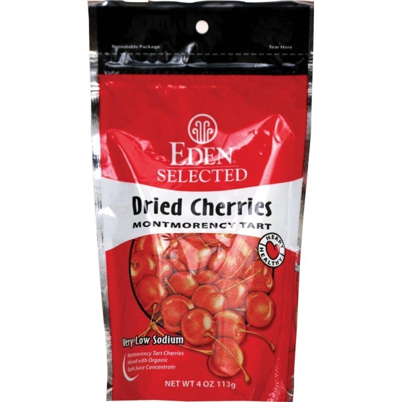 Eden Foods offers Montmorency Dried Cherries, a 4oz pack. These dried cherries are perfect for snacking, baking, or adding to your favorite dishes. With Eden Foods, you're getting quality dried cherries packed with flavor.