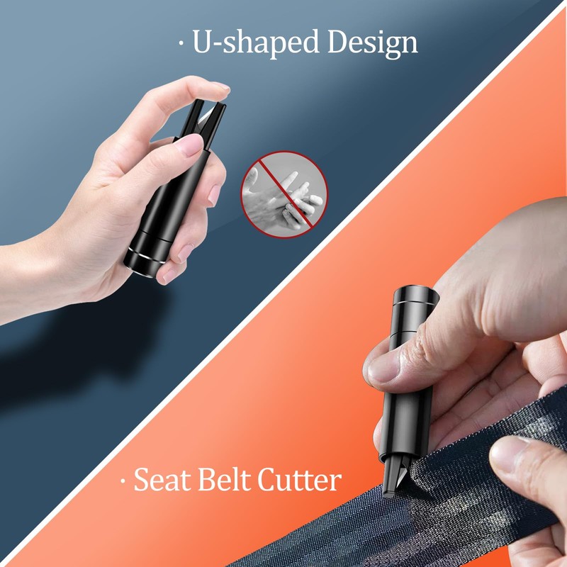 - 🧰【2-IN-1 SAFETY TOOL】This window breaker seatbelt cutter can help you and your family escape quickly when your car is trapped. The seatbelt cutter is built-in sharp stainless steel blade, in case of emergency, open the protective cover and aim the U-shaped blade at the seatbelt, the sharp stainless steel blade can cut off the stuck seatbelt in an instant. With U-shaped hidden blade design, safe and not hurt your hands.