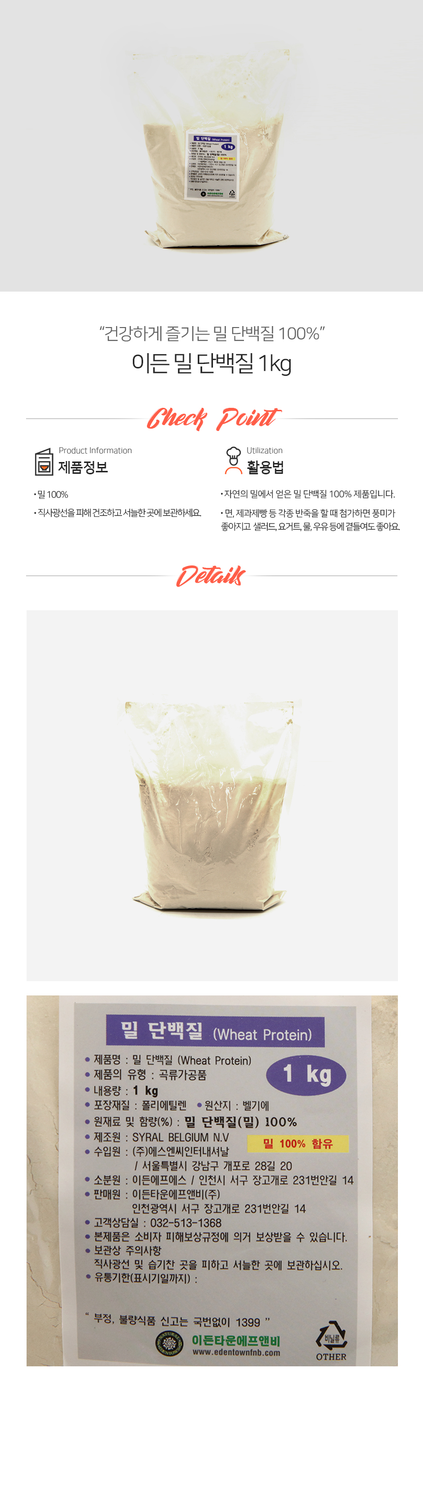 Eden Wheat Gluten Protein Powder 1kg WJT / 이든 밀 글루텐 단백질분말 1kg WJT