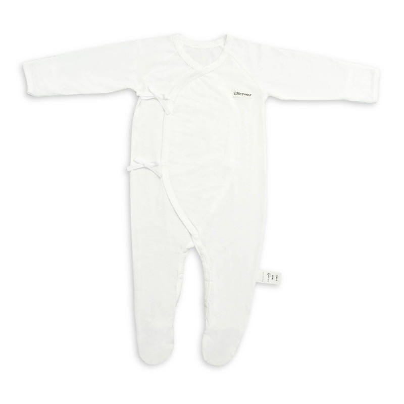 EDENSWEAR Unisex Baby Zinc-Fiber Footie Romper Built in Flip Mitten/Bootie, Ideal Sensitive Skin, Eczema, Etc. (12-18 Months / 31.5 Inches, White (Flip Mittens))