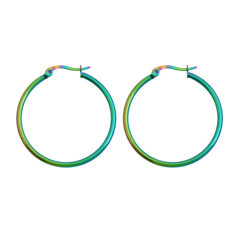 Edforce Stainless Steel Rounded Hoops Earrings (20mm-60mm Diameter) (Rainbow 30mm)