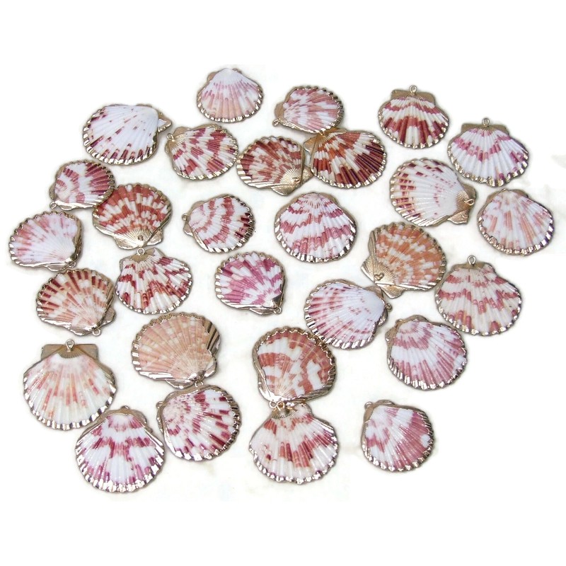 EDG Beads and Gems Seashell - Gold Plated Edge - Natural Sea Shell Pendant - Scallop Shell Pendant - Clam Shell Pendant - Charm - 40mm to 50mm