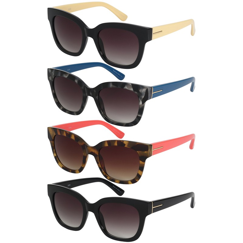 - Available in four different frame and lens colors including; black+yellow, black-grey demi, yellow-brown demi, and black. Choose from grey or brown gradient lenses