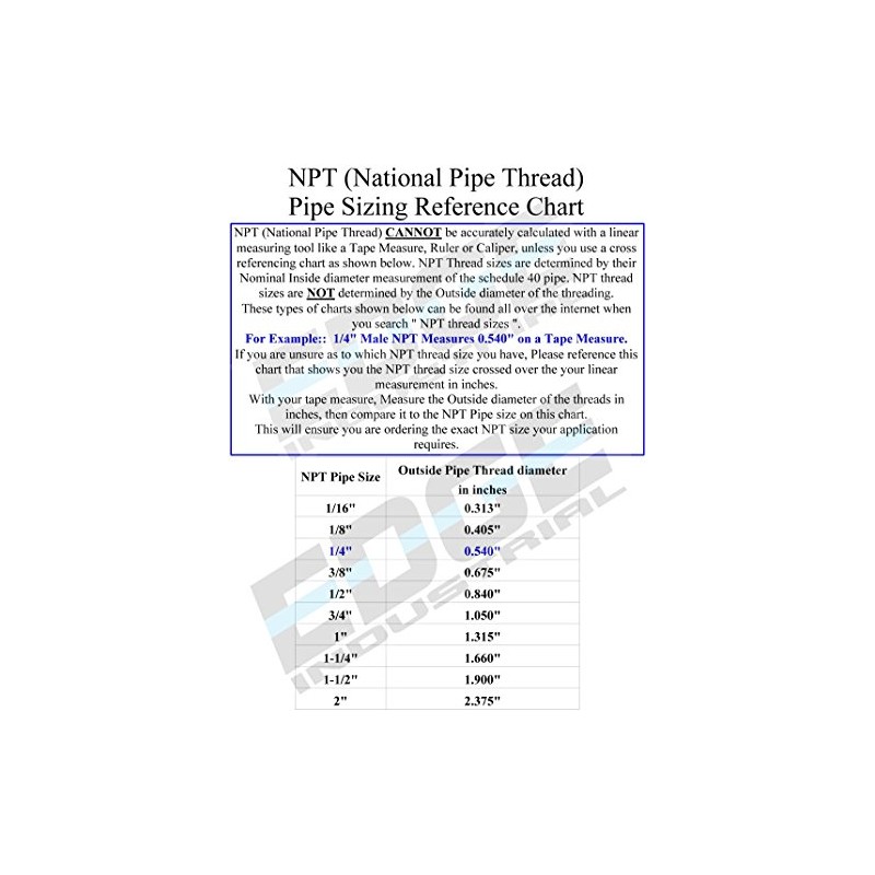 - PLEASE NOTE, 1/2" NPT MEASURES 0.840" OUTSIDE THREAD DIAMETER IN LINEAR INCHES