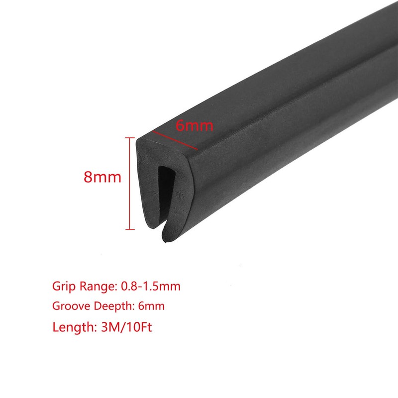 - Edge Trim U Seal Black PVC Plastic U Channel Edge Protector Fits 1/32'' - 1/16'' Edge 10 Feet Length
