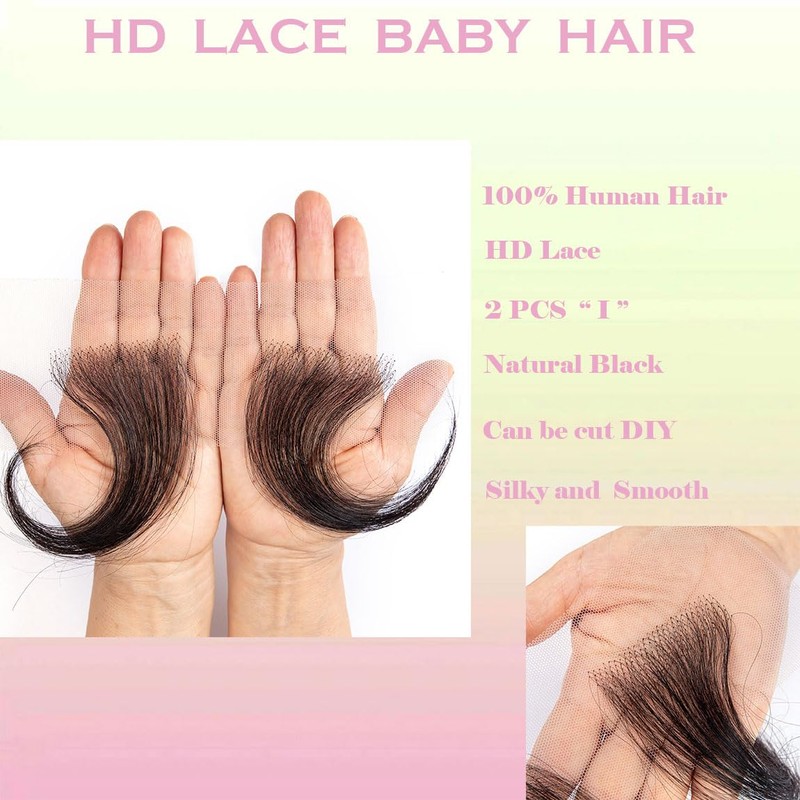 Edges Hair Top Swiss HD Lace 100% Real Human Hair Reusable Breathable Invisible Lace Hairline Stripes Natural Black Curly Baby Hair for Women (2pcs"一")