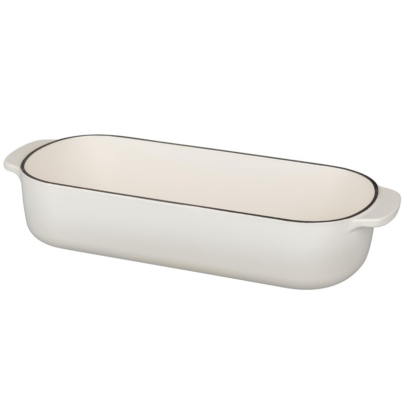 Designed for baking long loaves and tea cakes, this Rectangular Enamel Loaf Pan features a durable enamel coating that promotes even heat distribution. The smooth surface helps with easy food release and cleaning.