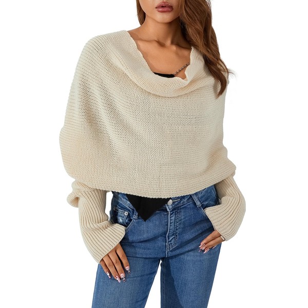 Edhomenn Wool Scarf for Women Knitted Wrap Pullover Multi-Use Solid Colour Y2k Autumn Winter Scarf with Long Sleeves, 01 Beige