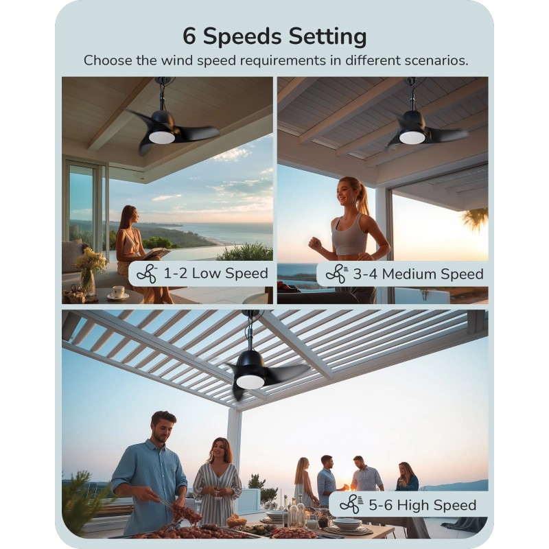 - [Memory Function] With memory function, our gazebo fans outdoor hanging allows you to save your preferred settings, including light brightness, color temperature, fan speed, and direction; simply turn off the fan for at least 10 seconds to save your settings—next time you turn it on, it automatically restores your last used preference