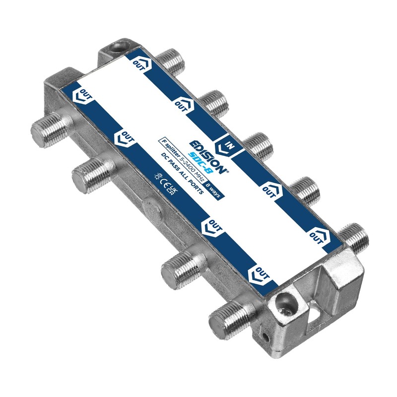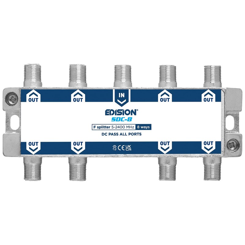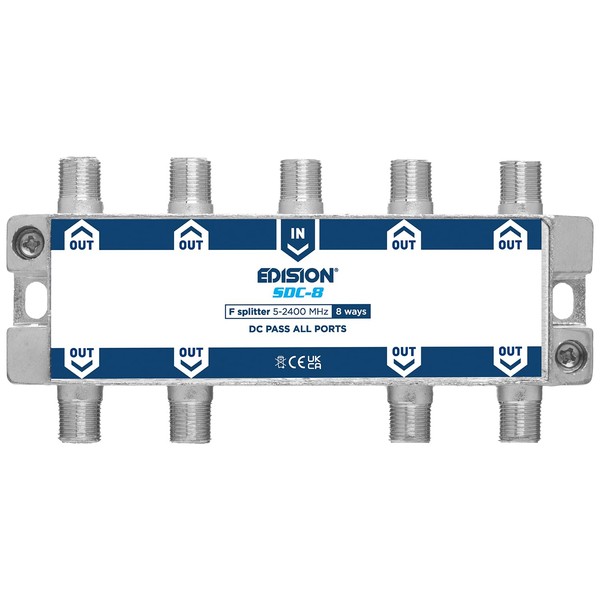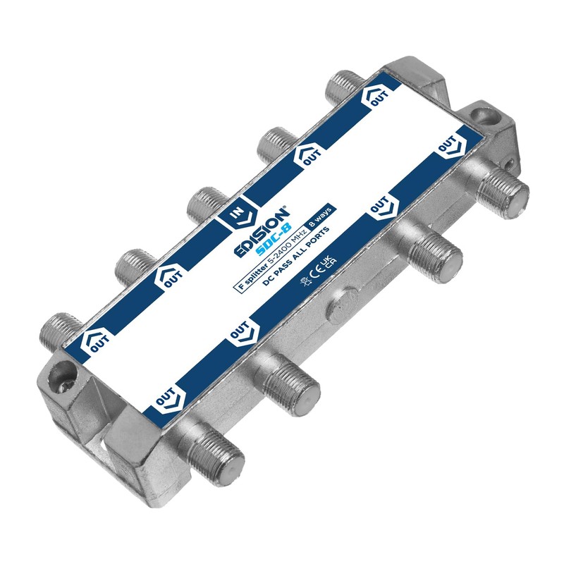 EDISION SDC-8 SAT Splitter 8-Way Suitable for TV, Satellite, Cable TV, Radio, Unicable, Frequency Range 5-2400 MHz, DVB-S2, DVB-T2, DVB-C, DC Passage, 8-Way