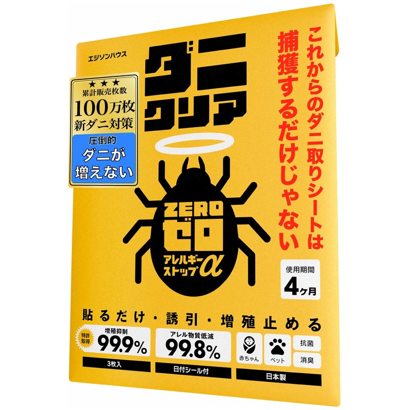• [Anti-dust mites] From the day you put it! "Dust Mite Clear Zero Allergy Stop α" uses an attractant that uses food quality ingredients derived from yeast. Recreate the nutritional environment of dust mites that you love, and make them stay in place and accurately collect dust mites into the seat. The surface of the seat also contains special active ingredients that act on the growth cycle when the dust mites pass through, helping to inhibit egg hatching and growing to adult. This not only reduces the number of dust mites but also reduces the growth of a long time. Developed using research mainly for types that prefer moisture, such as dust mites and claws, often found in homes and are designed to be effective from the day you place it. One sheet can last for about 4 months and is suitable for continuous use all year round