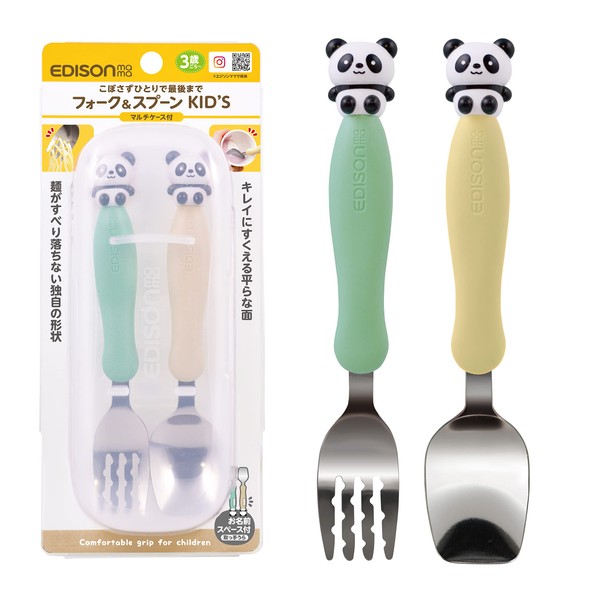 EDISONmama Kids’ Fork & Spoon Set with Multi-Case, 3 years and up, 1.5x Larger Size, Panda