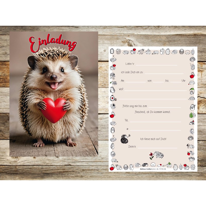 Edition Colibri 10 Hedgehog Invitations for Birthday, Cute Party Invitations, Wedding, Registry Office, Theme and Garden Party, Hedgehog with Heart (11155)