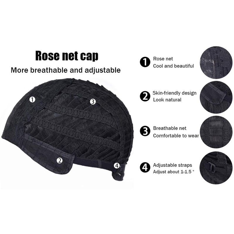 -1.Rose net cap, more breathable and ajustable. You can adjust the cap size by the pin and hook on the back.