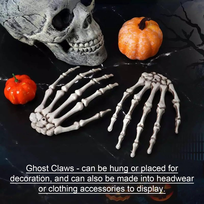 - 【Size】The size of this skull hand is 7*16cm, it can be bent like a real hand, the size is appropriate, and the vivid and realistic style can easily create a horrible atmosphere.