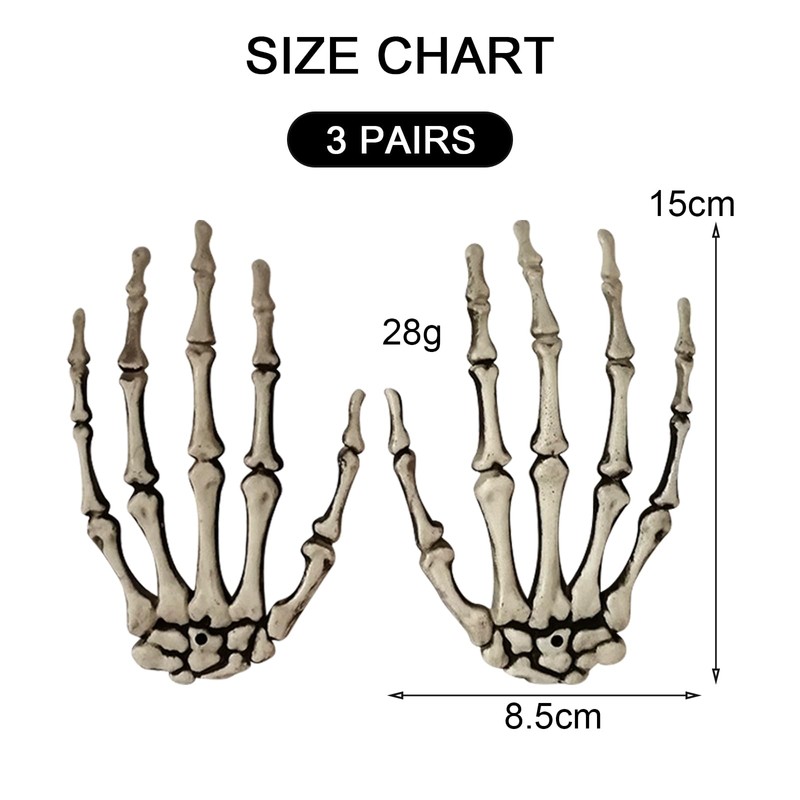 - 【Packaging】The packaging includes 3 pairs of skeleton hands. They are lifelike and similar to human hands. They are a very good trick prop. You can use them to scare your friends.