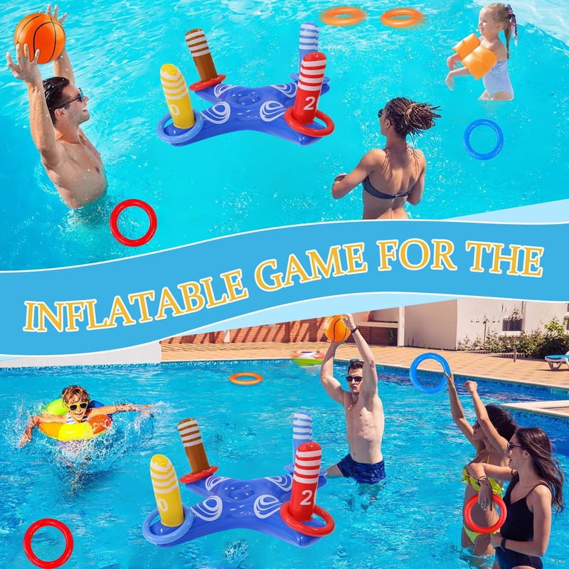 EDLMKM Inflatable Pool Ring Toss Game Toy Set, Inflatable Ring Toss Games, Swimming Pool Game for Kids and Adults, Indoor Outdoor Toys Gift for Kids Family