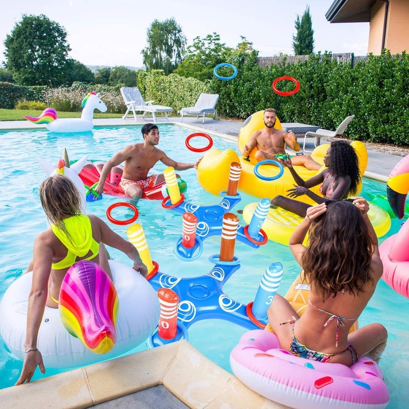 - 【Package Include】1 Pcs ring toss and 4 pcs inflatable rings and mini pump (random color). Perfect for Hawaiian and Mexican themed parties, pool parties, and garden games.