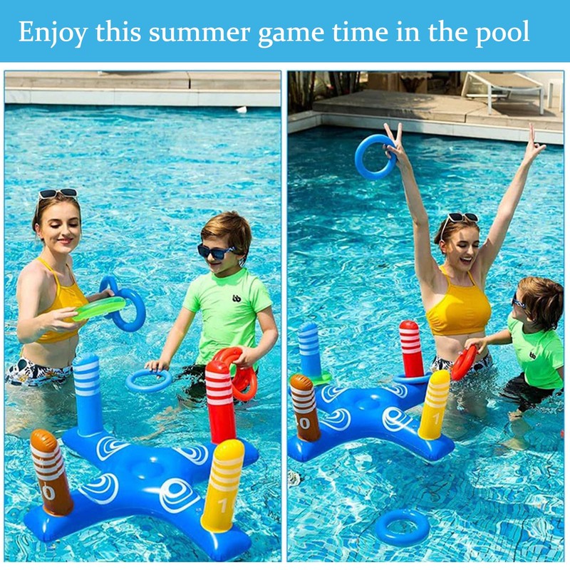EDLMKM Inflatable Pool Ring Toss Game Toy Set, Inflatable Ring Toss Games, Swimming Pool Game for Kids and Adults, Indoor Outdoor Toys Gift for Kids Family