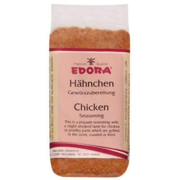 - make your recipes more delicious with a generous sprinkle of Edora's Chicken Seasoning. With a spicy flavor and full-bodied texture, it will give you the sensational German taste. The best raw materials, careful grinding, blending, and temperature-controlled storage contribute to the Edora difference.