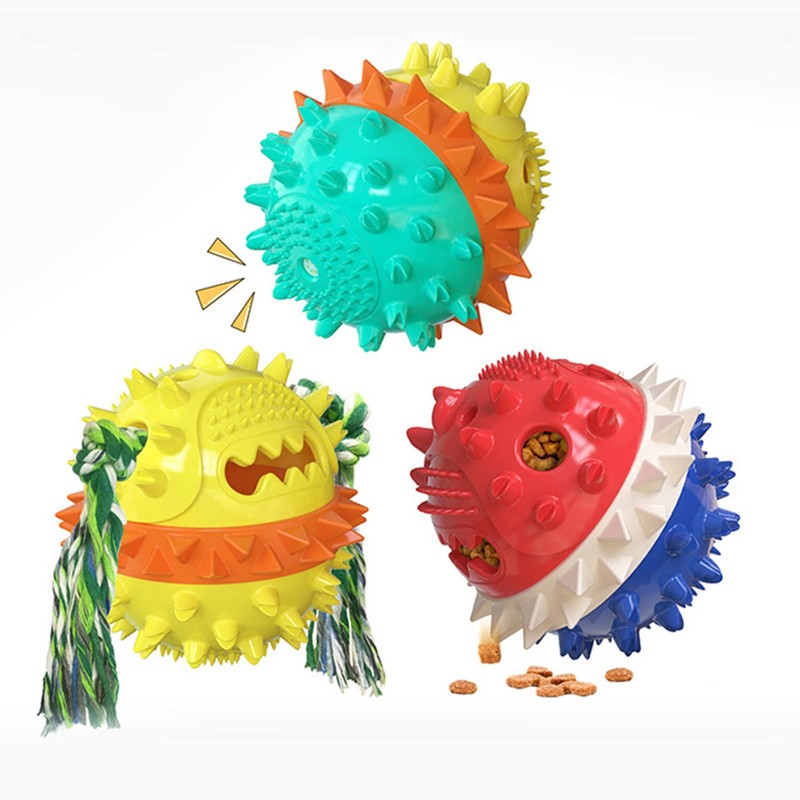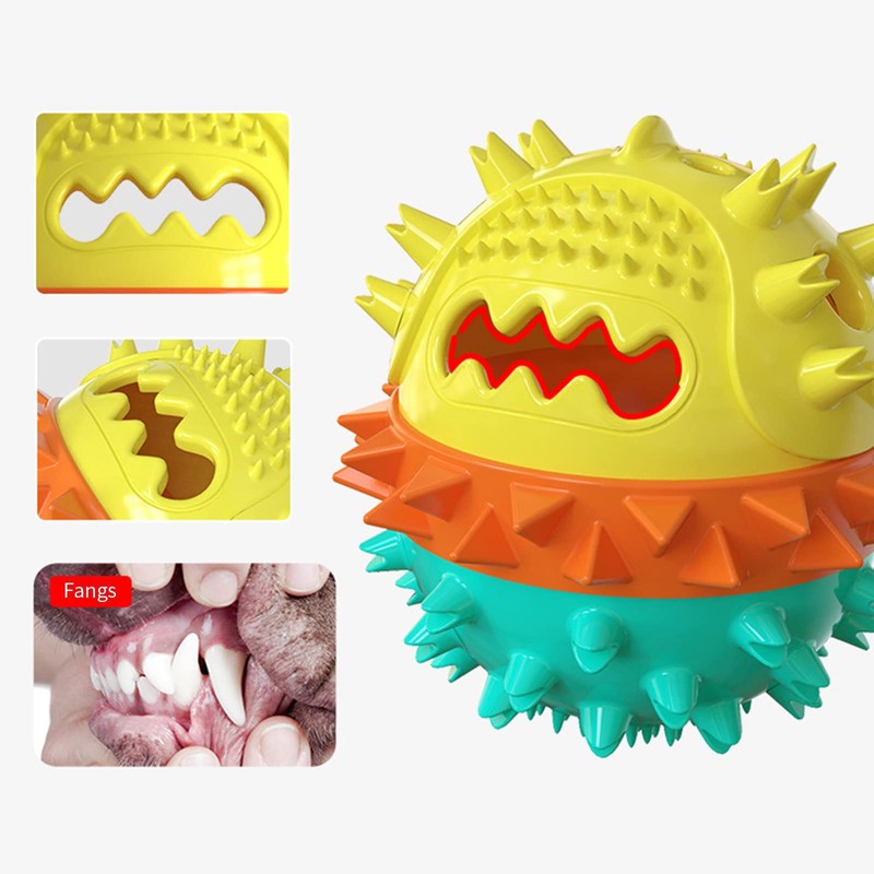 - Die gezackten Molarbumps und die dreieckigen konischen Molarbumps sind in verschiedenen Größen und Stärken angeordnet. Wenn der Hund dieses Hundespielball kaut, dieses Hundespielball reinigt die Zähne & Zahnzwischenräume ganz von alleine.