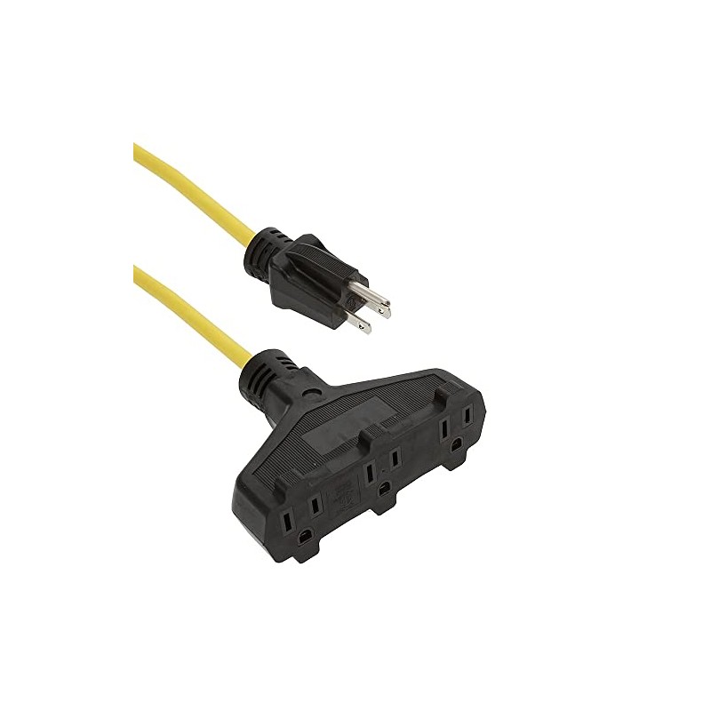 eDragon 2 Feet 3-Outlet Adapter SJTW 14/3 Yellow, (3 Pack)