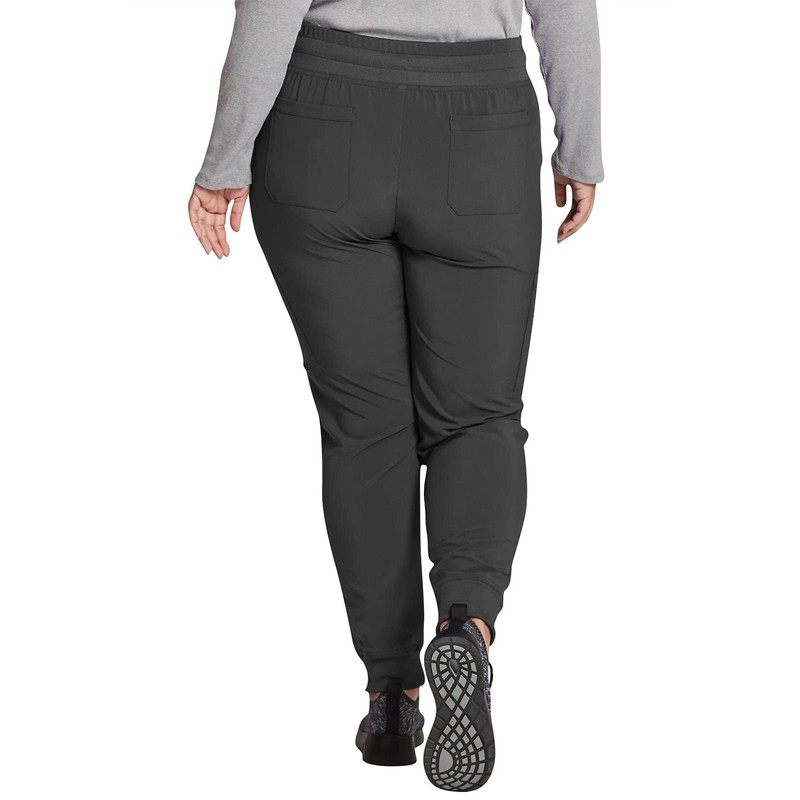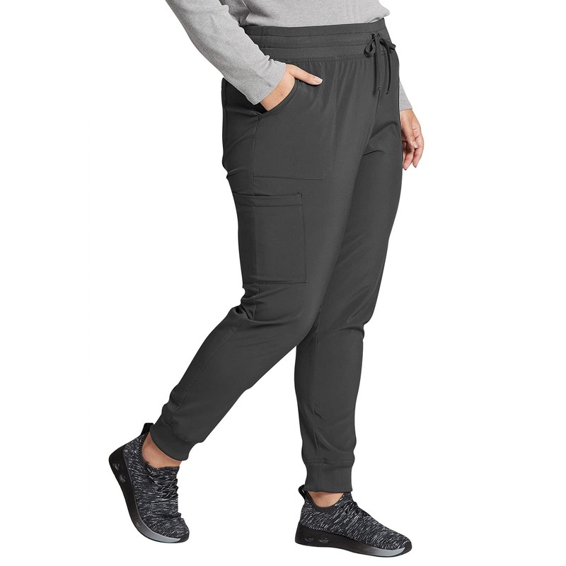 - COMFY FOUR-WAY STRETCH FABRIC - Dickies EDS Essentials womens jogger scrub pants are constructed from a poly/spandex fabric blend with moisture wicking that is stretchy, soft, durable, and machine washable making it comfortable and easy care to outlast your toughest work shift. You'll look good and feel good thanks to the performance fabric in the scrubs joggers for women. Plus size scrubs for women available.
