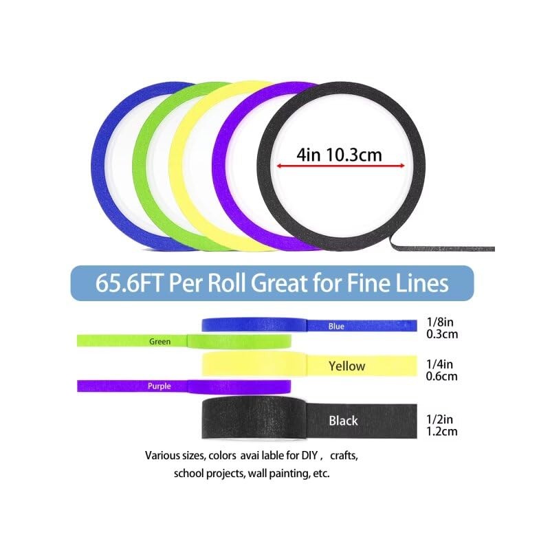 EDSRDRUS Thin Painters Tape 1/8, 1/4, 1/2 inch Width Painter Tape Paint Tape Masking Tape Pinstriping Tape, DIY Art TapeSmart Selection, 3" Large Core…
