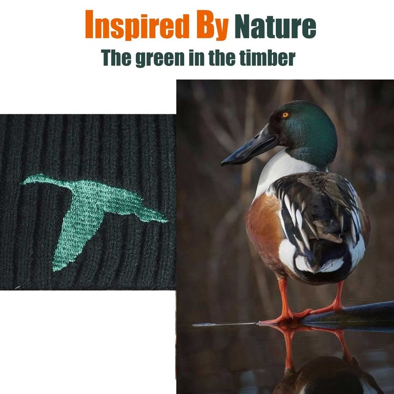 - REVERSIBLE AND STYLED FOR BOTH INDOORS AND OUTDOORS - Hunter lifestyle on acylic side with decent flying duck embroidery and camo decoration, it's a professinal hunting beanie when turning to camo side
