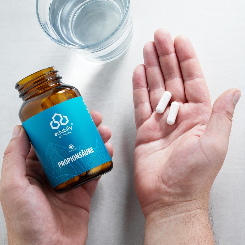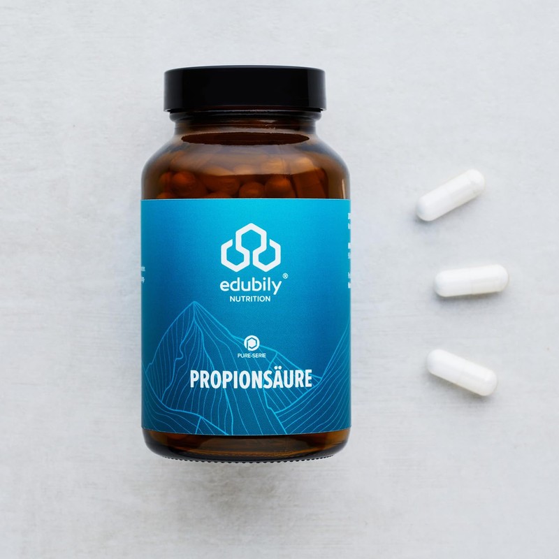 edubily nutrition® Propionic Acid Capsules, 750 mg Pure Sodium Propionate per Capsule, No Additives, 90 Capsules in Brown Glass