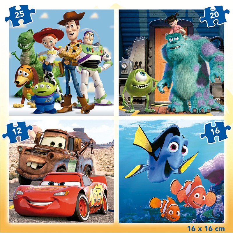 Educa - Pixar Films, 4-in-1 Puzzle with 12/16/20/25 Pieces, Puzzle Set for Children from 3 Years, Toy Story, Cars, Finding Nemo, Monster AG (19681)