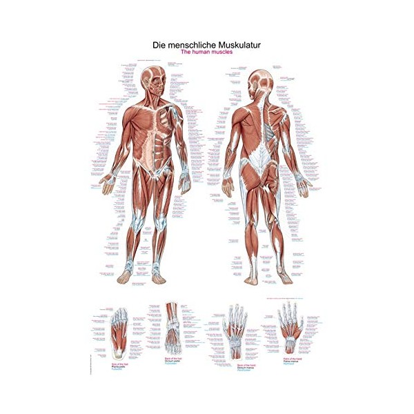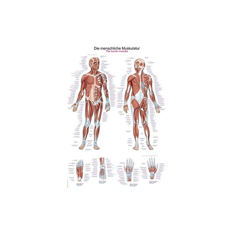 This medical teaching chart offers you at a glance in detail and exactly the course of the muscles of the human anatomy, clearly and illustrated in colour. Especially doctor's practices, classes and students of medicine will be delighted.