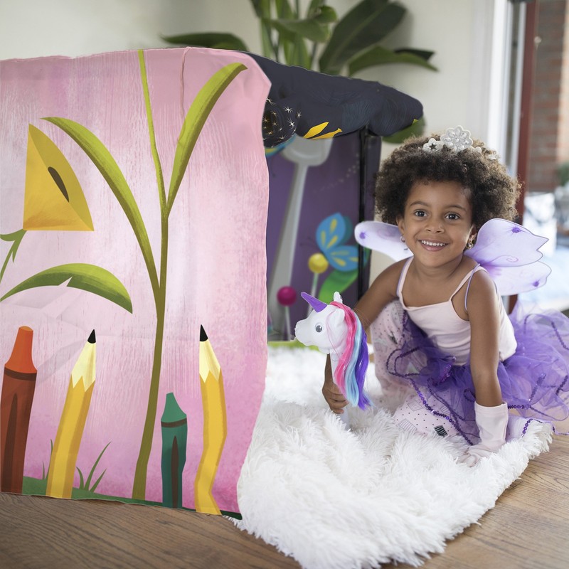 - MAKE YOUR OWN SPACE: Drape this treehouse-themed fort over any standard-size card table to make a secret space that’s all your own
