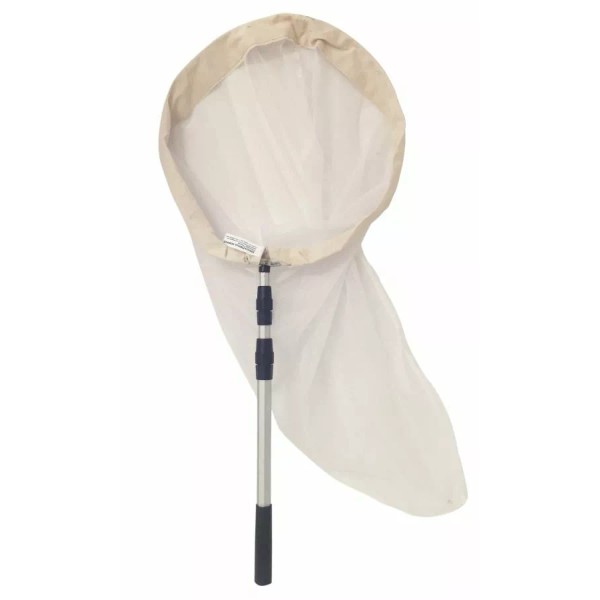 Professional Butterfly / Insect Sweep Net (15-inch Aerial) Net with extendable 17-41-inch handle, has a 15-inch aluminum hoop with reinforced heavy duty sail cloth band and a net bag depth of 33-inches. The extra-durable polyester net bag tapers to form rounded open bottom. Educational Science Sweep net bags are fabricated from white durable blended polyester netting material. The mesh size is approximately 24 x 20 per inch. The tricot interlocking netting is manufactured in a manner that helps prevent snags and tears. The net bags are banded with natural heavy-duty sailcloth. These bags are available in 15-inch and 18-inch diameters. The detachable threaded aluminum handle extends from 23-54-inches. When the handle is unscrewed and detached from hoop, the net bag, handle, and hoop will fit in large purse, small duffel bag, or large backpack. Replaceable parts and accessories are available from Educational Science for years of dependable service. Optional stainless steel telescoping 17-59-inch handle, hoops, and net bags are available from Educational Science.