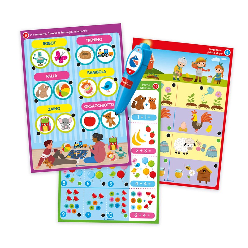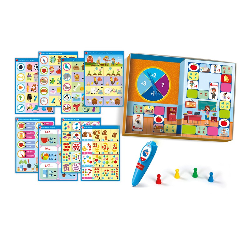 - Interactive Pen: the pen signals the correct answers with sounds and lights, so the child is able to advance the game himself