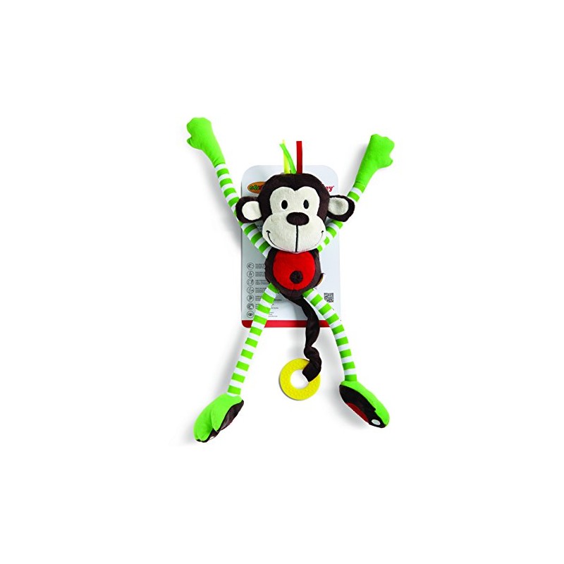 - Product description: can be used from birth and offers an incredible variety of textures, features and functions (Arms, Retractable Leg bands have Self Adhesive, tail to chew, stomach, "Rattle variés." fabrics), this soft toy is the perfect companion for a discovery of fun and full comfort! Develops: and sensory motor skills, coordination, logic and reasoning contents: 1 soft toy (Monkey)