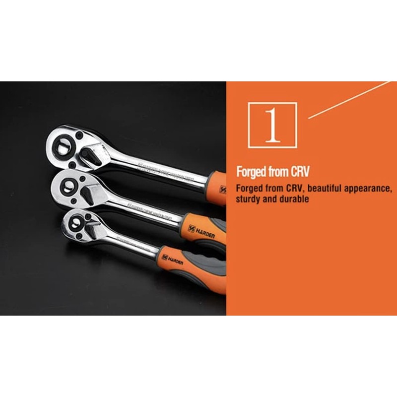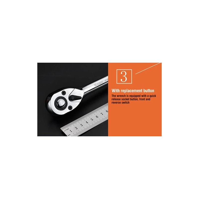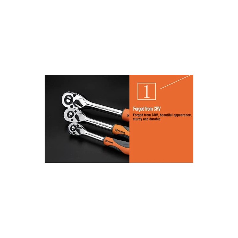Edward Tools Harden Pro Socket Wrench - 72 Tooth Reversible CRV Steel Quick Release Ratchet Wrench with Rubber Ergo Grip Handle - Flip Switch for Forward and Reverse (1/2")