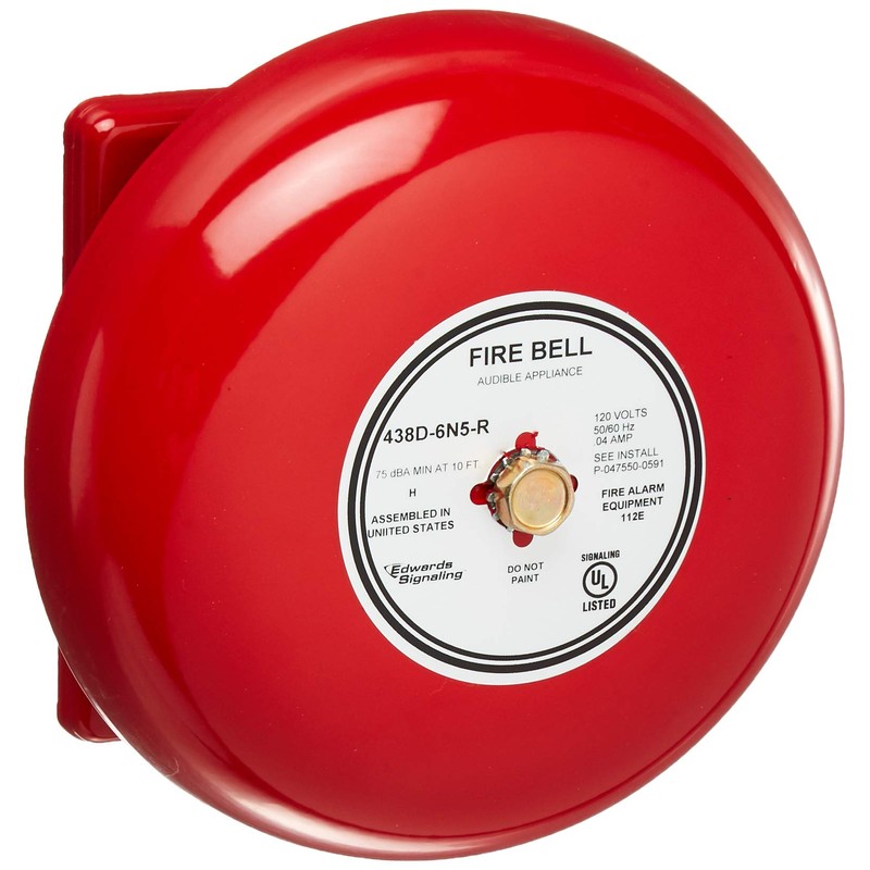 Edwards-Signaling Fire Bell, Red, 6 In.
