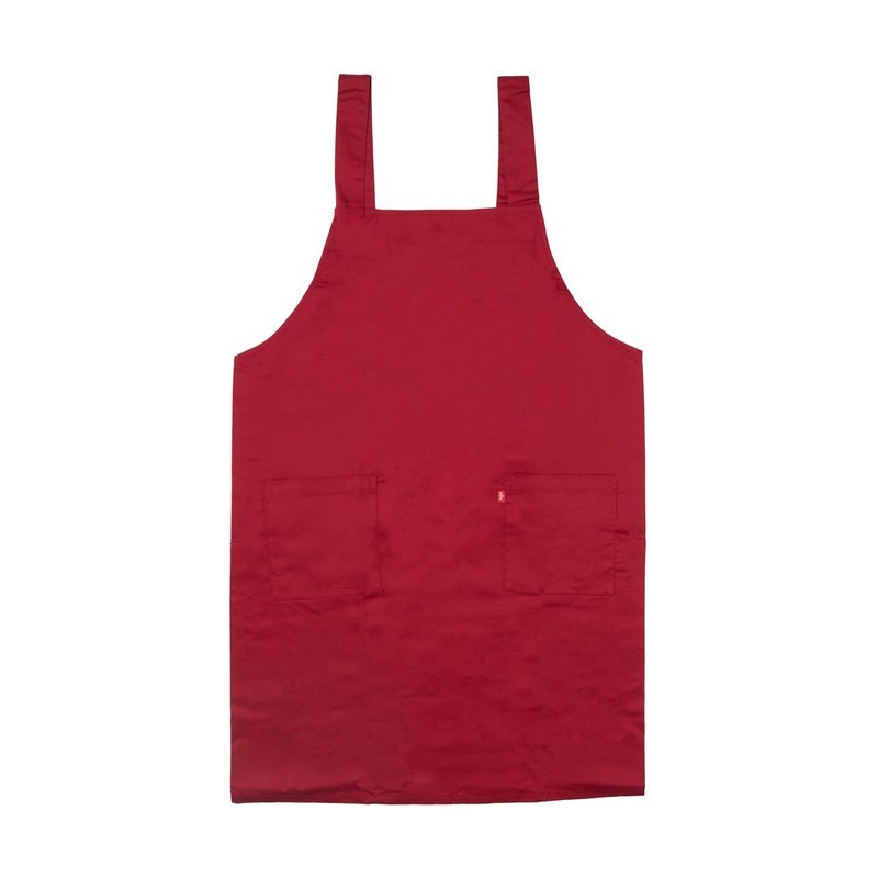 Edwin Apron, Double Level Adjustable Back Button, Plain, H-Shaped, Double Sided Pockets, Red, M, red