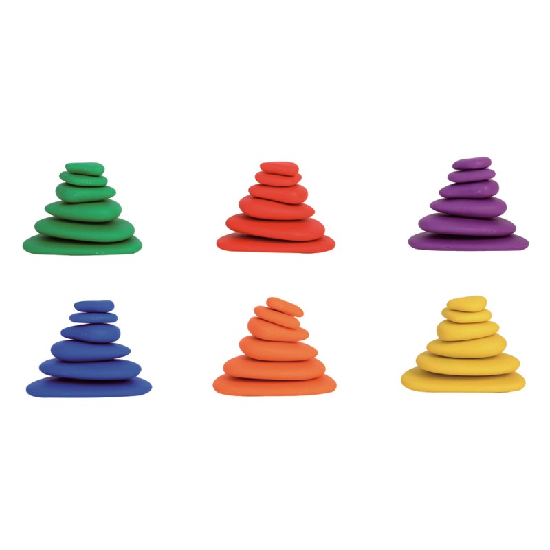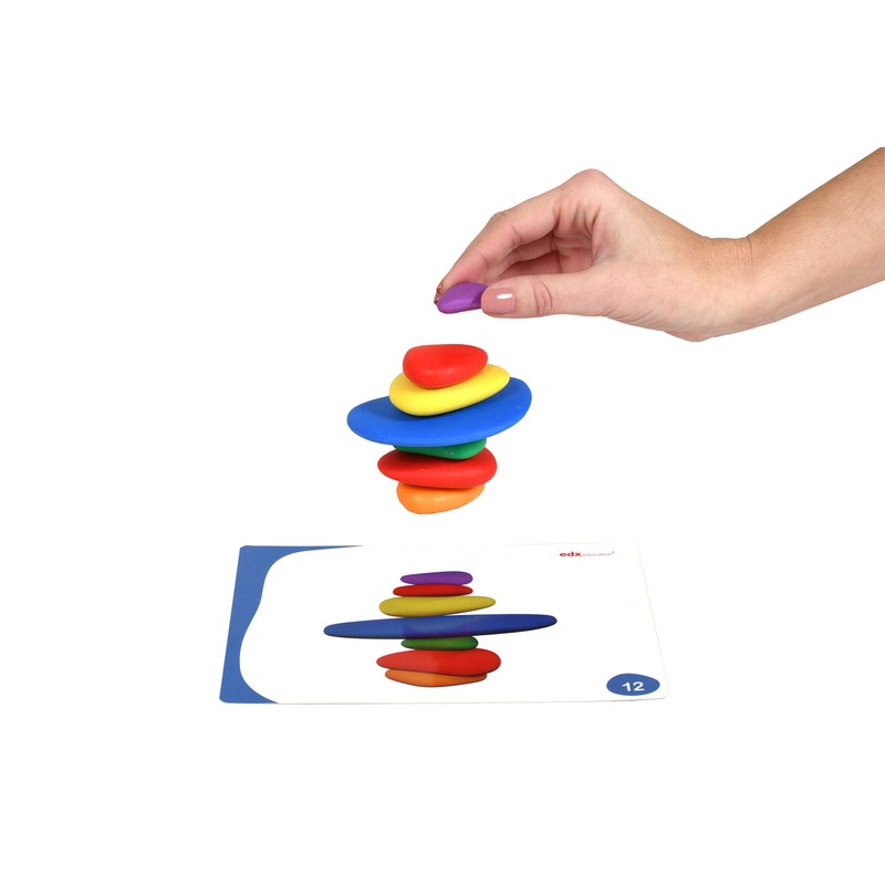 - BRIGHT COLORS AND WONDERFUL TO TOUCH -- These lightweight, colorful stones have immediate visual appeal plus their warm, smooth surface makes them a wonderfully tactile early math resource. Children will be fascinated by the pebbles' bright colors, odd shapes and warm feel which make stacking even more fun.