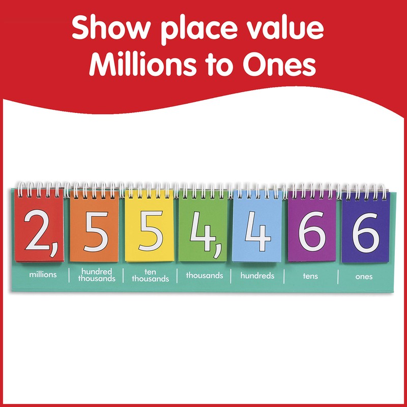 Edx Education Student Place Value Flip Chart - Millions - in Home Learning Supplies for Math Lessons - Double-Sided - Whole Numbers and Decimals - Ones, Tens, Hundreds, Thousands and Millions