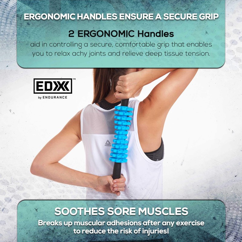 **Look Great. Feel Better** Go the distance with EDX. When you build strength, life is better. Every day activities are easier. You don't tire easily. Sports and fun activities won't leave you winded. You don't get as tired sitting for long periods at the office. **Got No Gym Nearby? Don't Want to Pay for One? No Room for Bulky Exercise Equipment?** Then we have the answer for you. Over one hundred different configurations available using our adjustable removeable twelve node pieces. Discover an endless amount of creative ways to invent your own unique individual massager roller stick, time after time. Strong metal rod holding nodes opens so you can change up and personalize until you find your ideal massage accessory. **So Go Forth, and Get Fit! EDX is with you All the Way. Feel the burn!**