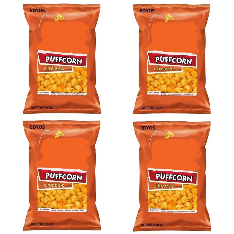 - (4) 4.25 oz bags of EDYOS Cheese Flavored Puffcorn