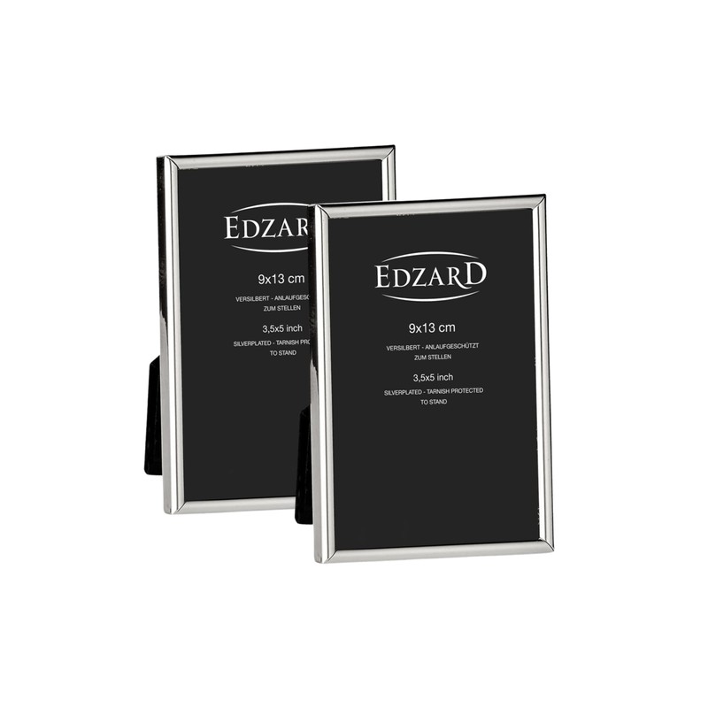 EDZARD Genoa Picture Frames for Photos 9 x 13 cm Silver Plated Tarnish-Resistant with Velvet Backing Set of 2
