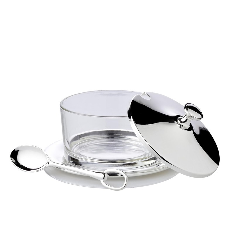 - ✔ High-quality material: made of highly polished crystal glass and combined with a silver-plated spoon, the serving glass impresses with its elegant look and easy cleaning - tarnish-resistant and durable.
