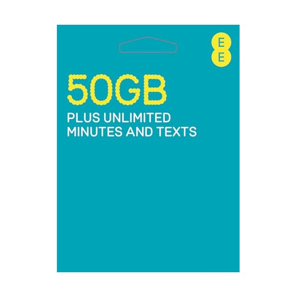 EE EE 50GB Data Sim includes £20 pre-paid credit, 50GB Data, Unlimited Minutes & Unlimited Texts